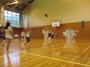 カレーを煮込んでいる間、体育館で親子ドッチボール大会が開かれました。