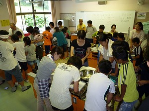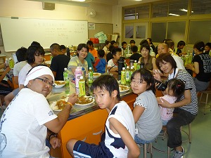 そしておいしいカレーをいただいた後、いよいよ肝試しです。昼間慣れている校舎でも、夜はとても不気味。保護者の皆さんのおどかしもうまく、あちこちで子どもの悲鳴が聞こえました。(ほんとに大丈夫?)
