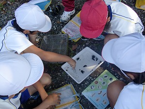3年生では、1学期の総合的な学習の時間に、「大川探検隊」というテーマで、塩津小学区を縦断する大川に生きる生物について調査し、学習をしました。