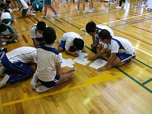 10月31日(月)に旧伊香郡の小学5,6年生が木之本運動公園体育館に集い、JRC交流会を行いました。