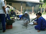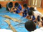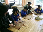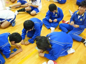 最初に東日本大震災の被災者に向けてプレゼントする千羽鶴を折りました。小さな折り紙で折りにくそうでしたが、教えあいながら、一人4羽の鶴を折りました