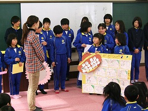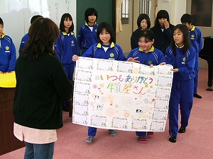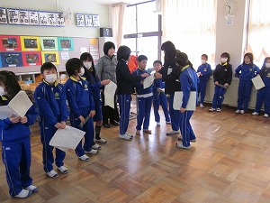 最後に、給食センターの方や杉本先生、栄養教諭の方などに、感謝のプレゼントを渡しました。