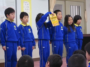 1月26日(木)の元気タイムに、給食委員会による給食集会がありました。