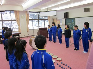 音楽クラブでは、ミッキーマウスマーチを演奏してくださいました。3年生も今、音楽でミッキーマウスマーチを練習しています。音楽クラブの人たちのように、上手にえんそうできるようになりたいねーと話していました。