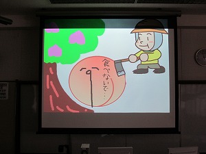 パソコンクラブでは、プレゼンソフトを使って、今まで作った名刺やカレンダー、アニメなどの紹介を聞きました。予定してくださっていたお絵かき体験は、残念ながら時間オーバーで体験できず・・・
