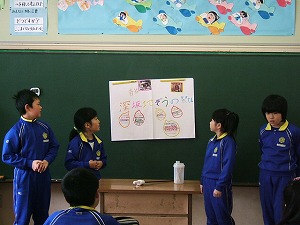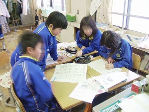 3年生では、3学期の総合的な学習の時間で、塩津の伝統行事について調べています。