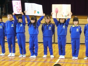 開校式では本校児童が代表で堂々としたあいさつをしました。