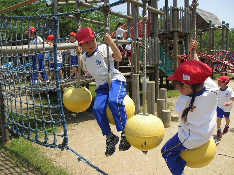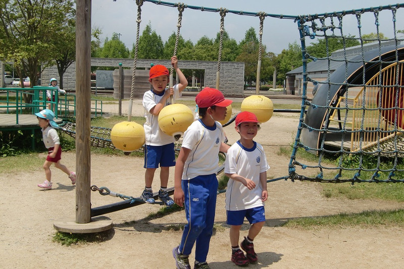歩いたしんどさなんてまるでなかったかのように、たくさんの遊具で元気いっぱい遊ぶことができました。午後からはすこしレベルアップした遊具にもチャレンジし、1年生から3年生まで混じり合って、楽しく過ごすことができました。