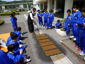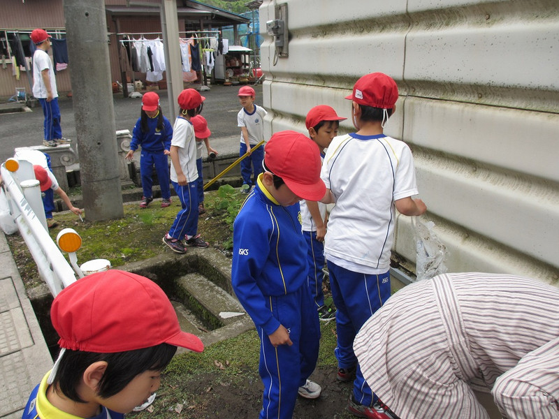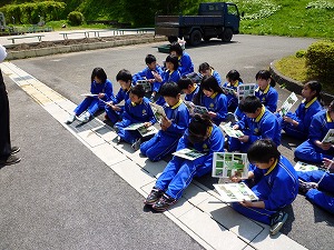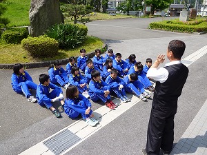 遠足に行く前に、みんなで学校の周りのゴミ拾いをしてから出発しました。