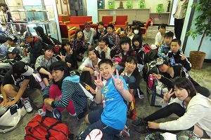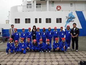 湖の子の前で記念撮影をし、長浜港を出発します。お見送りの皆さんもいて手を一生懸命にふりました。