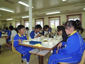 船での食事も楽しい時間です。地産地消のおいしい献立の料理をいただきました。