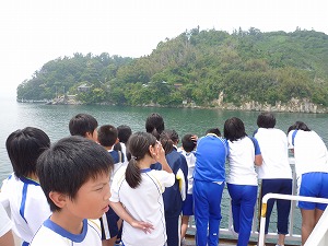 船の上からの塩津浜の風景を見ることができました。塩津小学校は見えたかな?見えたと言う子もいました。