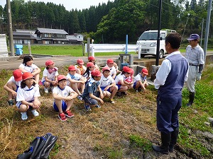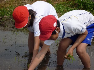 32℃と少し暑いくらいでしたが、約4kmの道を湖岸の景色や草花を楽しみながら歩くことができました。また、下学年の子の水筒を上学年の子が持ってあげたり、みんなで声かけ合って励まし合ったりする姿も見られました。