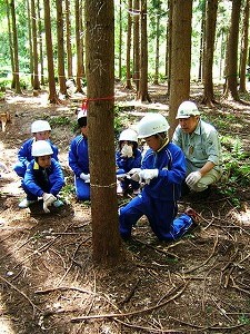 昼からは、「山の仕事体験」をしました。みんなで協力して間伐しました。