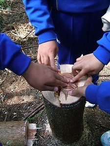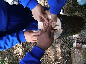 人工林と雑木林の違いを見つけたり、獣道を見つけたり、リスの気分になって森の中を歩いたりしました。