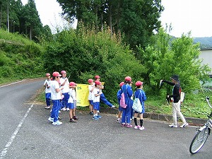 ふるさと公園を抜け、尾根道を通って、野坂から余呉へ抜ける林道を通りました。そこでは、ジャンケンマンとのジャンケン合戦や中学年と高学年へのクイズがありました。