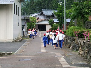 野坂の字の中を通り、低学年へ出題するコーナーに着きます。