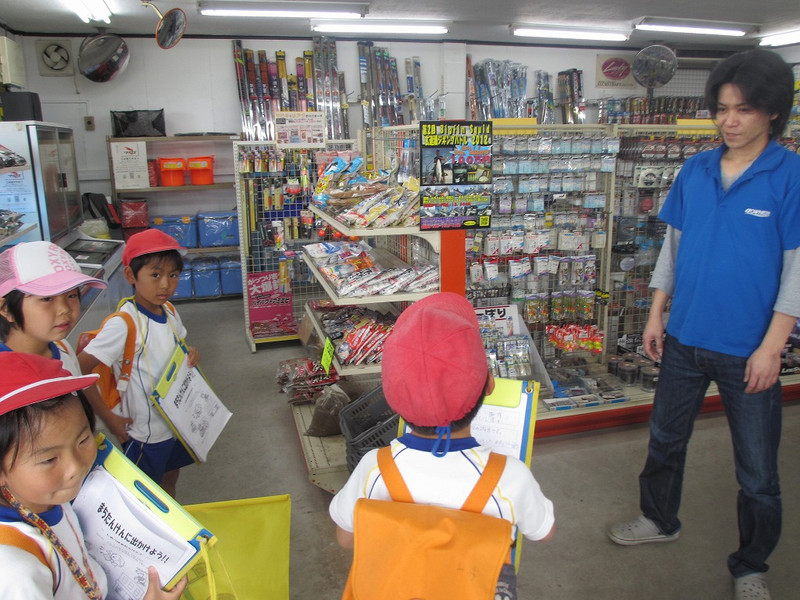 そこで、実際に塩津浜へ出かけ、グループに分かれて、「たくさんお店のひみつを見つけてこよう」と、自分たちが決めたお店を2件ずつたんけんしてきました。