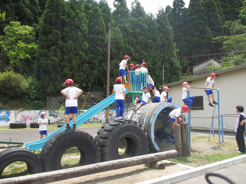 最後に、おすすめの場所紹介でも紹介されていた、塩津浜の公園やカニのいる小川を、みんなでたんけんました。高い鉄棒で体育で学習している技をしてみたり、ブランコでくつ飛ばしをしてみたりと、自分たちの字の公園を思い出しながら、楽しく過ごすことができました。