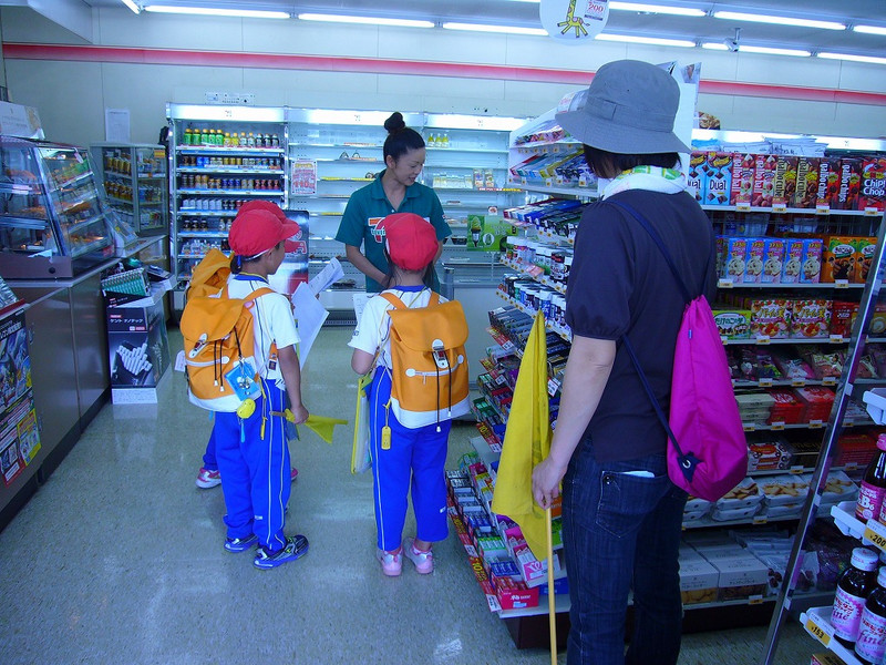 塩津のセブンイレブンは、14年前にできたそうです。特別に、バックヤードやジュースの売られている大きな冷蔵庫の中も、見学させていただきました。冷蔵庫のあまりの寒さや監視カメラの映像に、びっくり!!「おすすめのものは?」と店長さんにお聞きしたところ、「いまのおすすめは、シュークリーム」だと教えていただきました。たしかに、棚にシュークリームがいっぱい並んでいました。