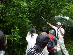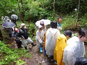 説明後も雨はやまず、予定していたコースを短くして散策を開始しました。雨の中でも自然は生生き生きと息づいています。