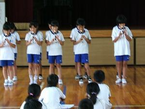 また、学年発表では、1学期のがんばりを見せてくれました。詩の群読やリコーダー演奏、国語の俳句の学習発表などを披露しました。