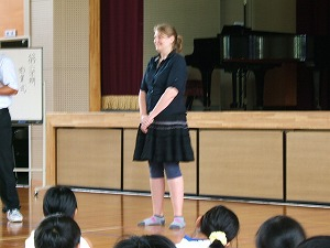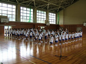 その後校長先生から、怪我や事故がなく元気な皆さんに会えてうれしかったこと、自分の命も人の命も大事にしてほしいこと、5・6年生が学校代表として水泳や陸上記録会に出場したこと、元気なあいさつをしてくれる児童がいること等の話を聞きました。そして、新しくこられた英語の先生の紹介をされました。新しい先生の自己紹介があり、すき焼きが大好きだとわかりました。