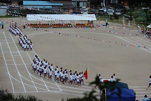 最後に、地域と一体になった恒例の「江州音頭」の輪がPTA主催によりできました。地域により少し踊り方は違うのですが、保護者や地域の方みんなが輪を作って踊りました。