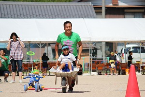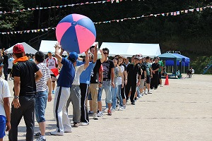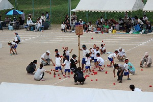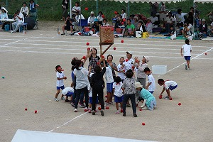 PTAも地区別で、2チームに分かれて、大玉おくりをしました。