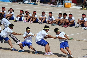 3~6年生での綱引きが始まると、おおきな声援が1・2年生からあがりました。