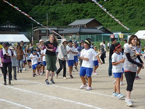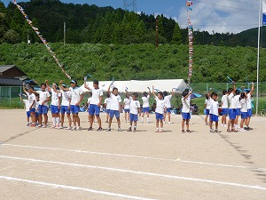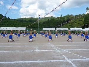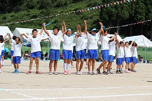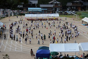 38名が運動場狭しと隊形を変化させて表現しました。満足した顔つきが印象的でした。