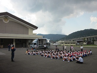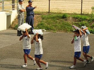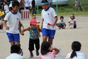 西浅井の校園で進めている連携の一貫として「5・5交流」があります(5歳児と5年生:来年度は、1年生と6年生です)。走り抜いて、お土産ももらいました。