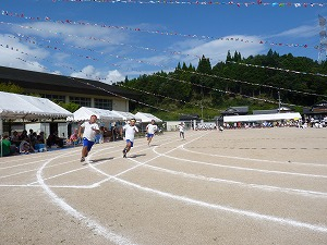 最初は、各学年ごとの徒競走です。50m、80m、100mをセパレートコースで走り抜きました。