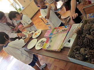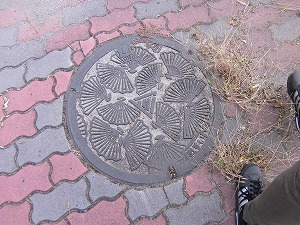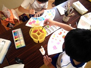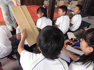 扇子で有名な安曇川では、子ども達はマンホールまで扇子のデザインがしてあるのに気づきました。お店の横には、扇骨がたくさん干してありました。