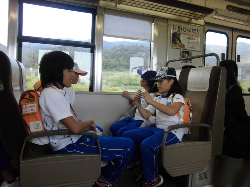 10月11日に、社会科の「わたしたちの県の様子」の学習をしに琵琶湖一周の旅に出かけました。近江塩津駅からJRで米原まわりで膳所駅まで行きました。車窓から見える景色をチェックしました。