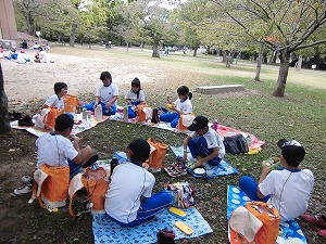 その後、膳所公園で昼食です。近くに近江大橋がきれいに見えました。