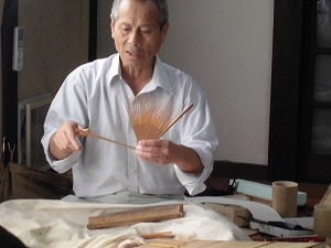 扇子作りの一部の実演を見せてもらいました。400年も受け継がれてきた手作りです。