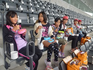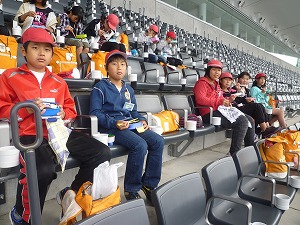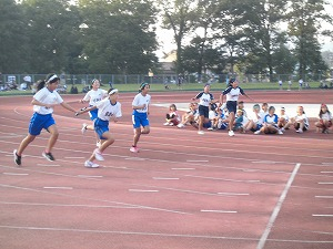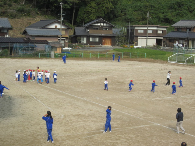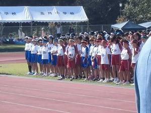 高学年が走るときは、その走りを低学年は見学し、声援を送りました。