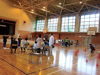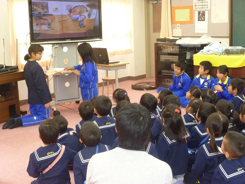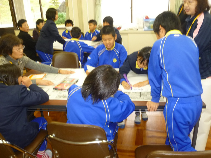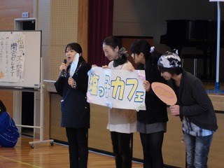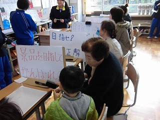 3時間目は5年生との交流です。音楽室で○×クイズなどをしました。これは塩っ子祭りでの学習発表を簡単なものに作り直したバージョンの発表です。