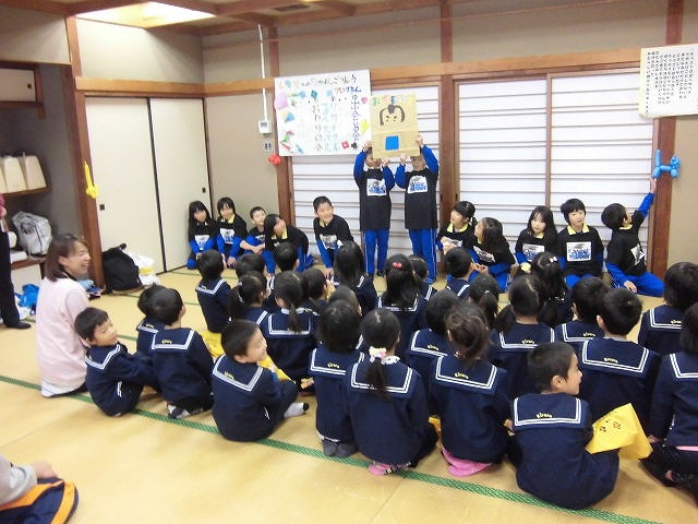 来年度 1年生になられるみなさんとの交流で、5年生のみんなも少し6年生という学年の在り方について、リーダーという立場について考える機会が持てました。できるだけ、わかりやすく楽しい交流を考えましたが、いっぱいの笑顔がみられてよかったです。こども園のみなさんありがとうございました。