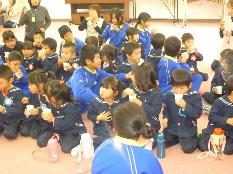 最後はみんな入り交じって5年生が作ったポン菓子を食べました。香ばしくて、甘くてパクパク食べる様子がとても可愛かったです。みんな気に入ってくれたかな?