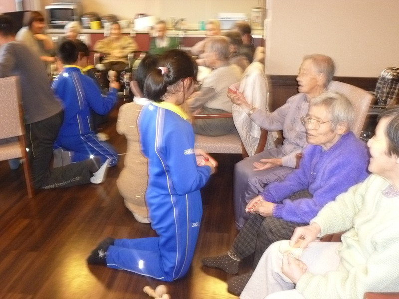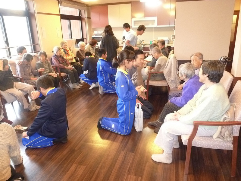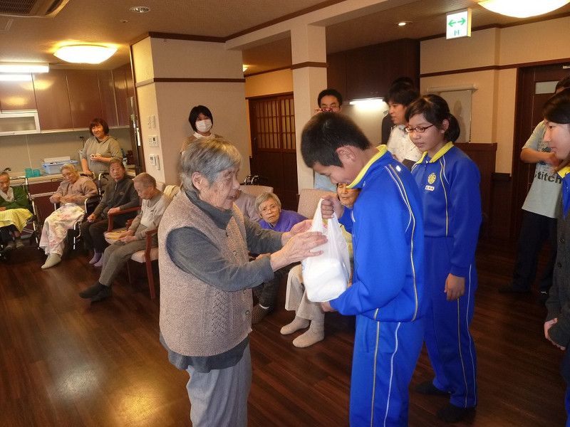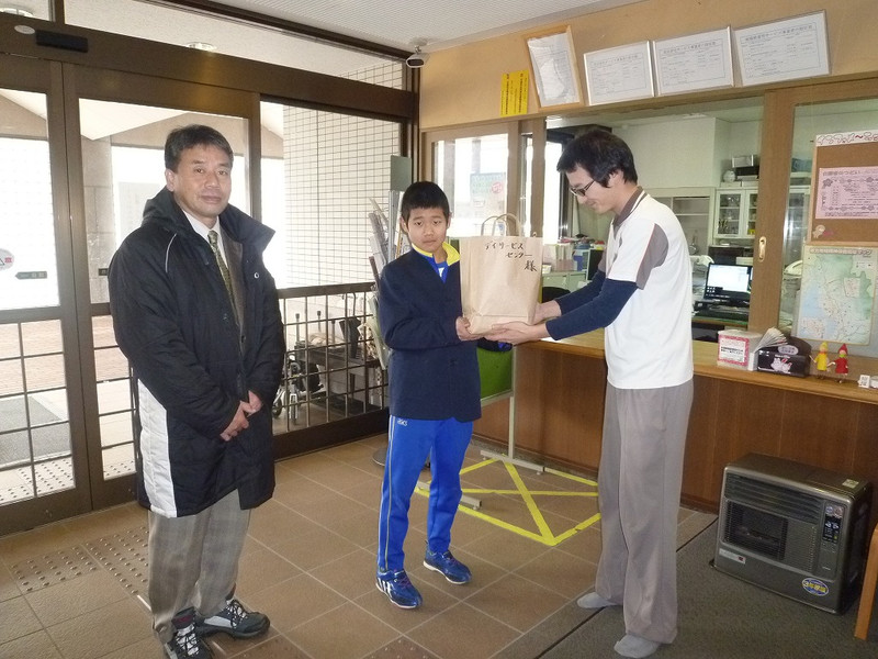 続いて、デイサービスセンター(あぢかま)さんへお正月のお餅用のお米をプレゼントしました。お年寄りのみなさんに味わっていただけたらと思います。