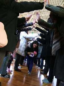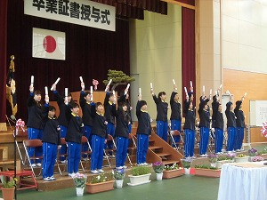6年生の退場は、児童の手をつないだトンネルの中をくぐっていきます。保護者の皆さんの協力も得て大変長いトンネルを通って退場していきました。