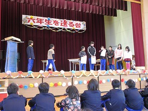 6日(水)の2・3校時が「6年生を送る会」です。保護者参観を兼ねていて、約60名近い参観がありました。