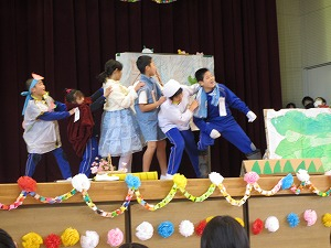 「TOMORROW」の全校合唱のあと、たてわり班による劇です。