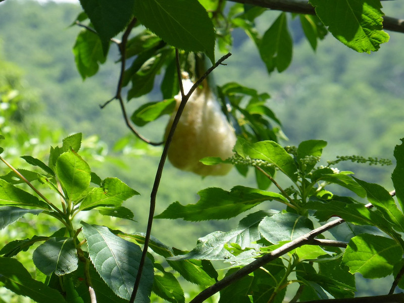 モリアオガエルの卵塊をいっぱい見ることができました。こんなのが落ちてくると気持ち悪いと言う子もいましたが、「なぜ、わざわざ木の上に卵を産むのか?」という疑問や、「卵塊の下には水がたまっている。」事実を知り、生き物の生きるための知恵を学ぶことができたと思います。いろいろな生命が一生懸命生きているんですね。