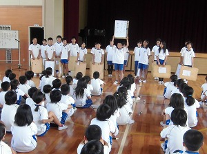 終業式の学年発表で、6年生は夏休みのめあてを俳句にして、発表しました。