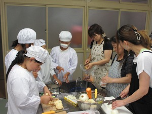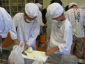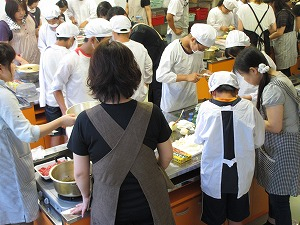 17:00に調理室に集合し、親子での調理実習、カレー作りが始まりました。