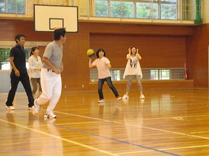 カレーを煮込んでいる間、体育館で親子ドッチボール大会が開かれました。