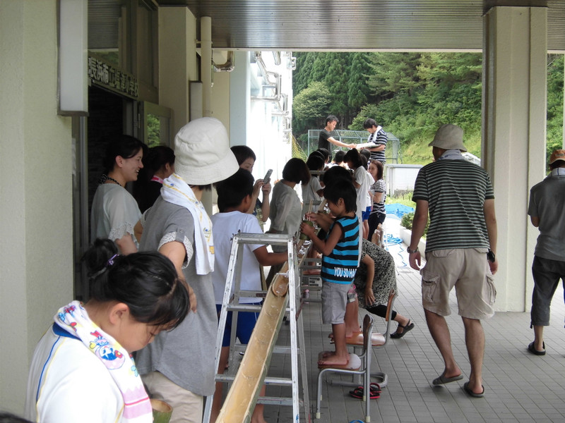 4本で繋いだ立派な竹の中を、そうめんが勢いよく流れると、子ども達も大喜びでそうめんを